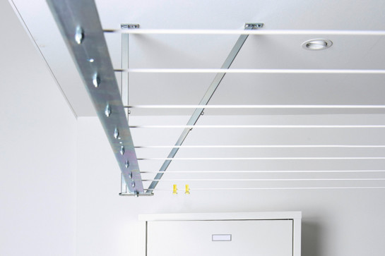 Das Wäscheleinen-System von LUNOR sorgt für eine saubere und übersichtliche Wäschetrocknung in Ihrer Waschküche. Die Montage kann direkt an die Wand oder mittels Teleskopträger von der Raumdecke erfolgen. Für die ideale Ergänzung im Waschraum empfehlen wir Ihnen «Die kleine Leine». Auf Arbeitshöhe montiert trocken Sie dort Kleinwäsche wie Socken oder Unterwäsche.